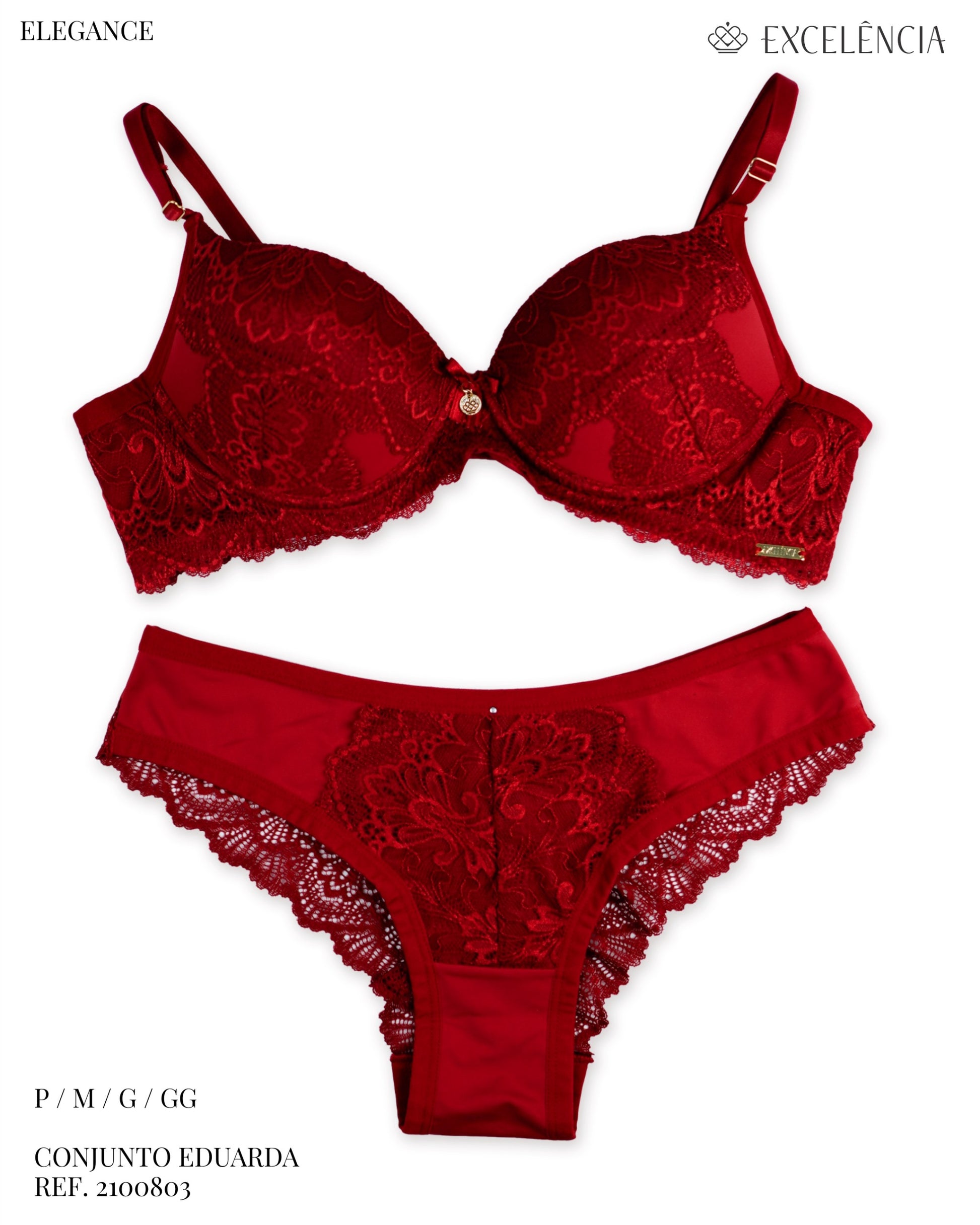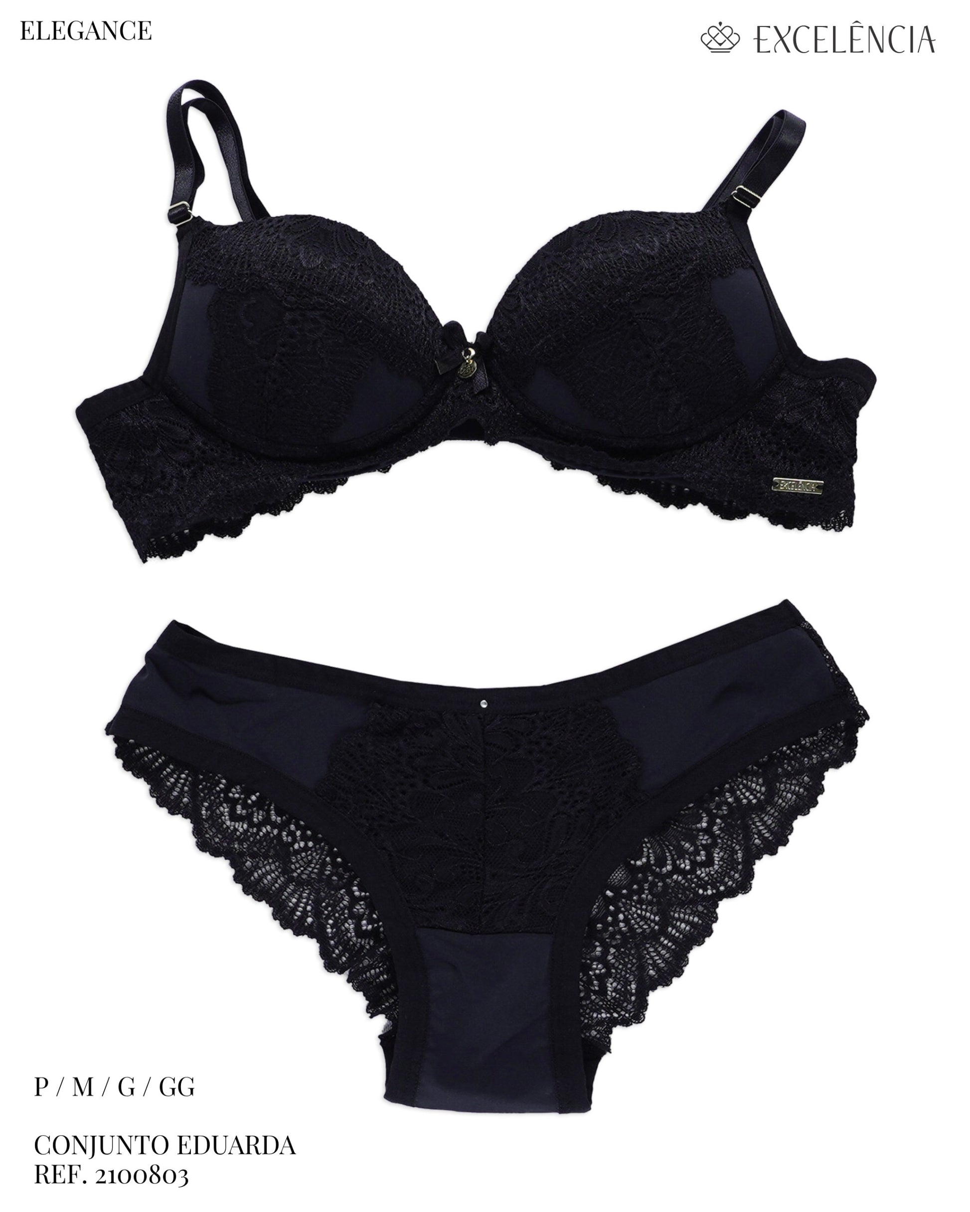 Conjunto elegante confeccionado em renda e microfibra, tecido com características de toque macio, respirabilidade e durabilidade, além de proporcionar conforto térmico.