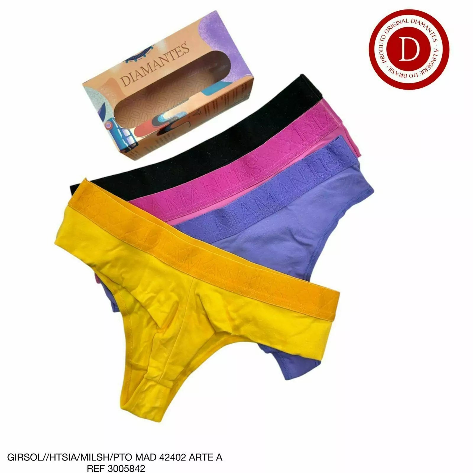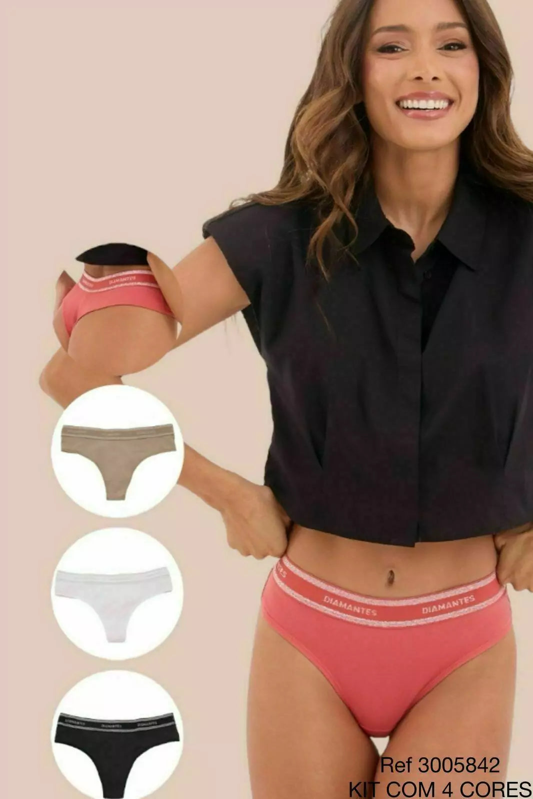 KIT CALCINHA FIO DE LATERAIS INTERMEDIARIAS E COS DE ELASTICOS PERSONALIZADO. E BUMBUM FIO EM TECIDO DUPLO MODELO CONFECCIONADO NO COTTON DIAMANTES QUE COMBINA ALGODÃO E ELASTANO PARA OFERECER CONFORTO E AJUSTE PERFEITO.