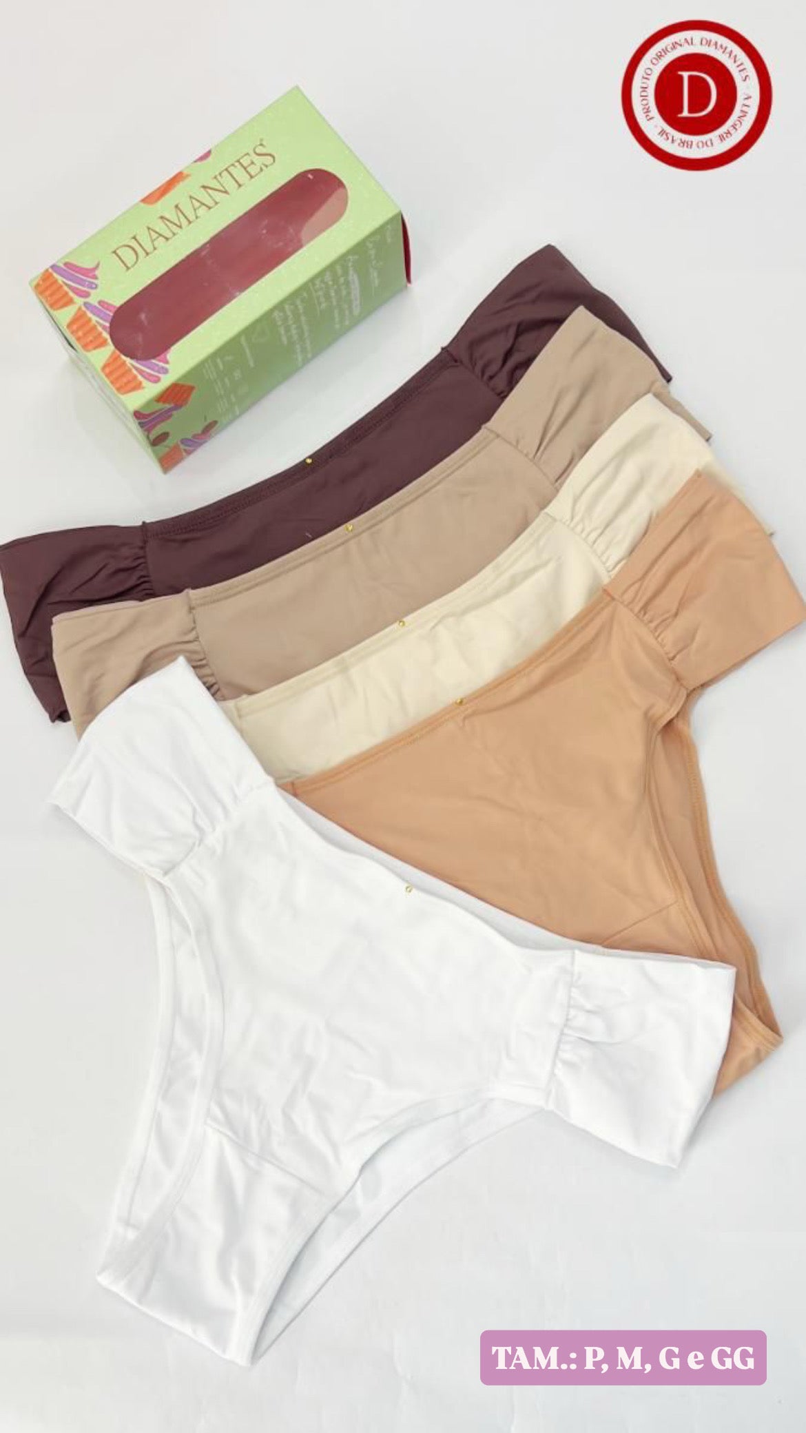 Kit calcinhas bombom em cores variadas em microfibra leve e respirável, com laterais franzidas e largas que agregam conforto e sofisticação para o dia a dia. Embalagem caixa diamantes personalizada ideal para presentear e/ou organizar.