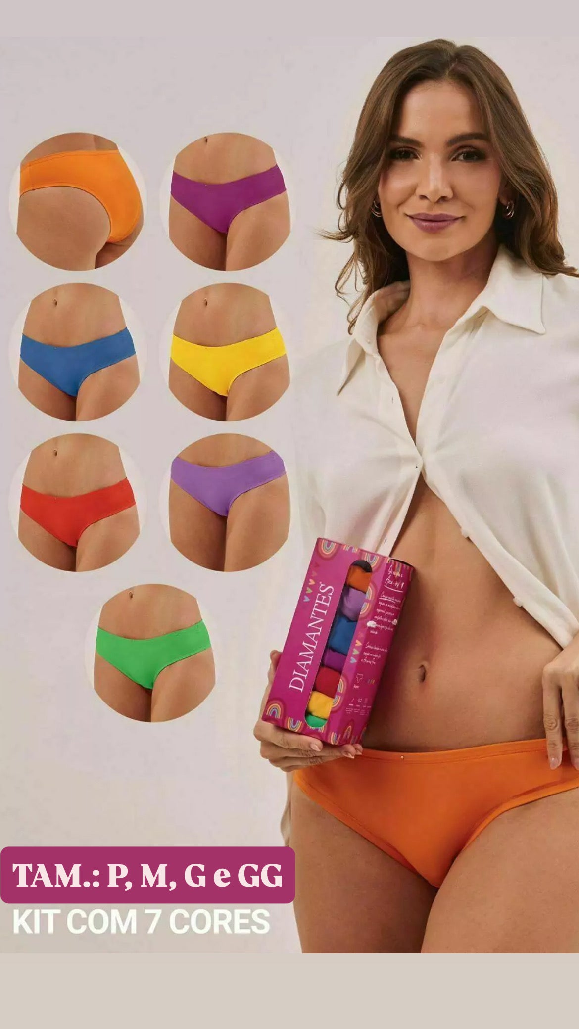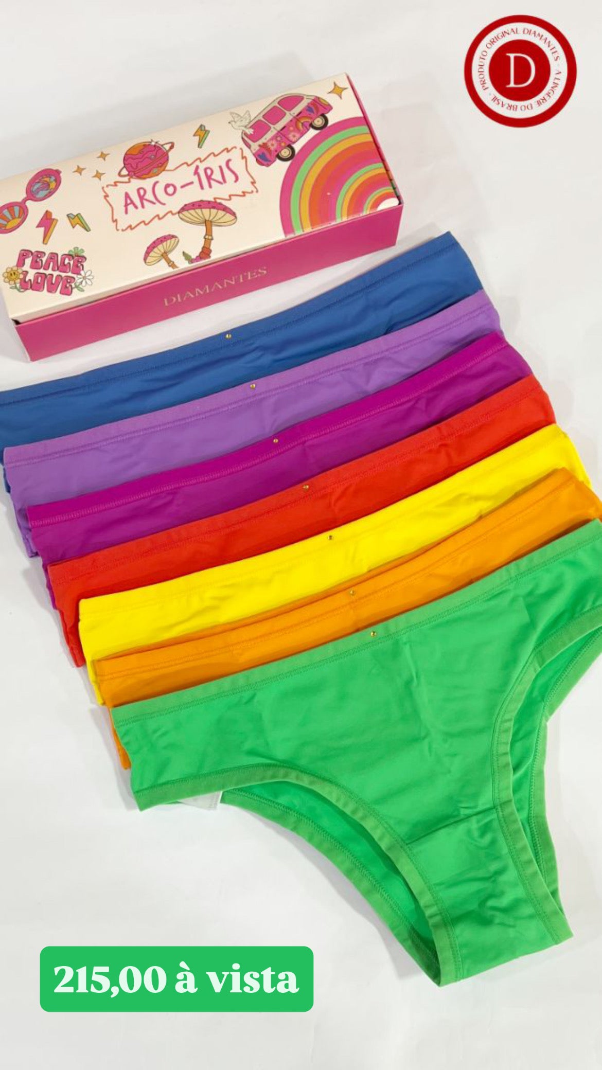 KIT COM 7 CALCINHAS BIQUINI DE MICROFIBRA NA CAIXA ARCO IRIS - DIAMANTES