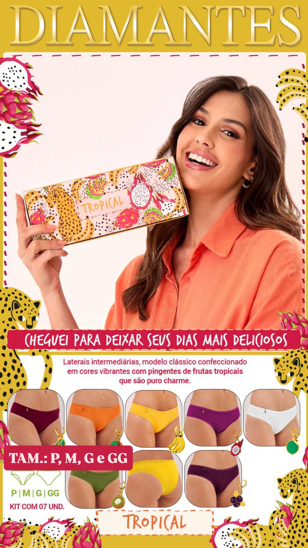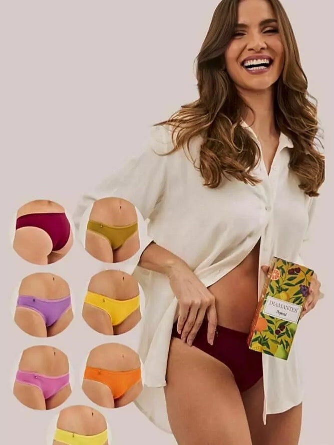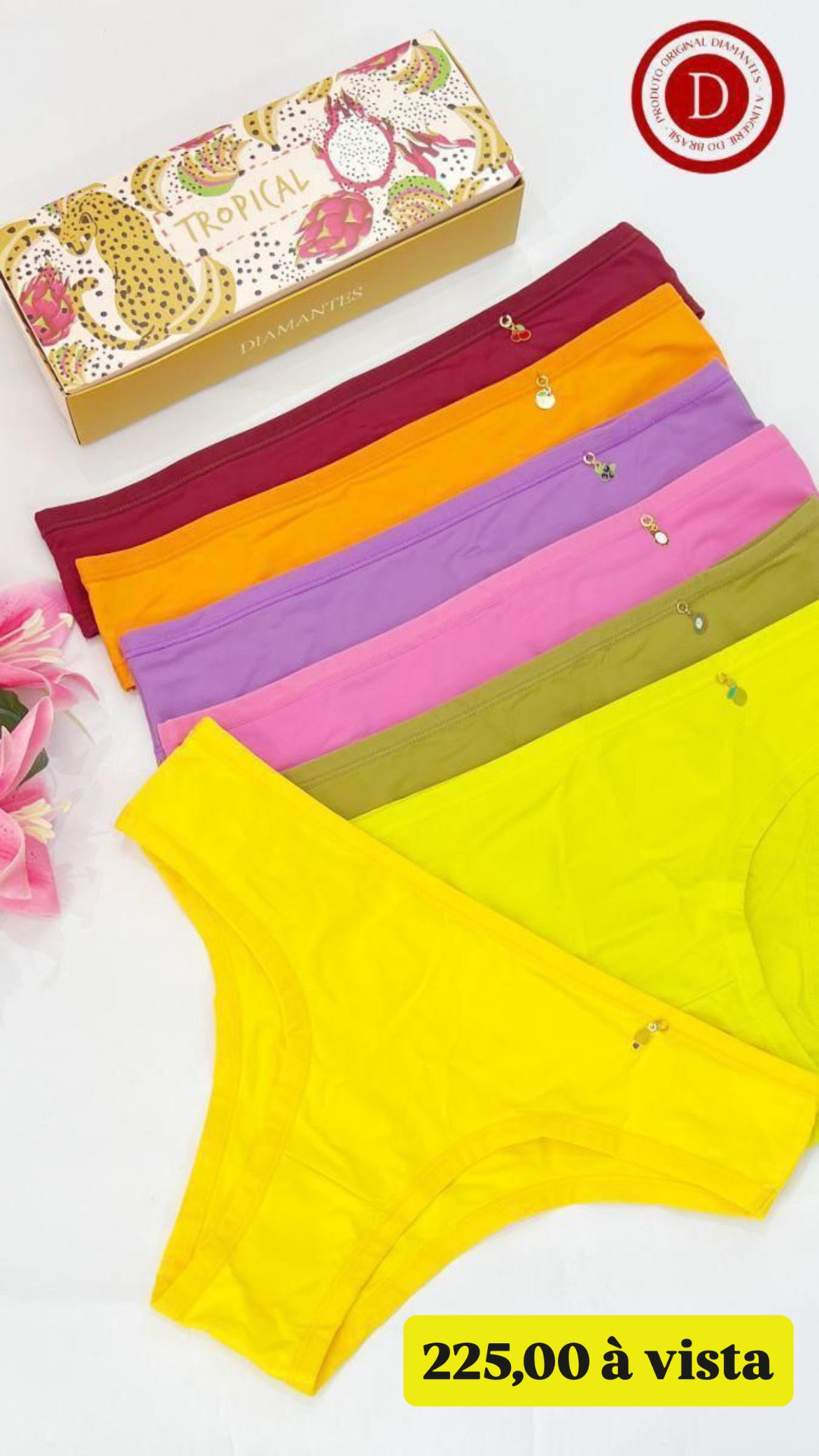 Kit com 7 calcinhas biquíni em microfibra na caixa Tropical