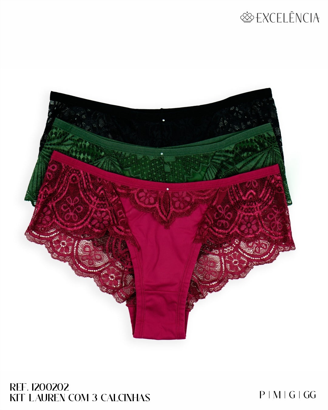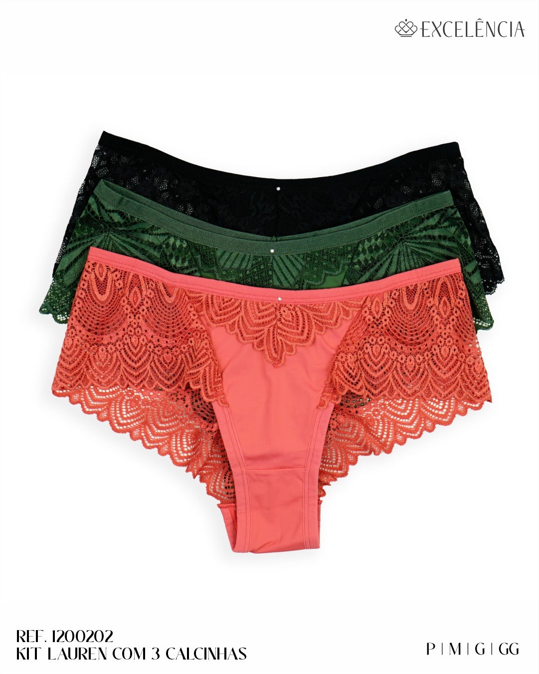 Kit de calcinhas Lauren Excelência com 3 unidades em cores variadas