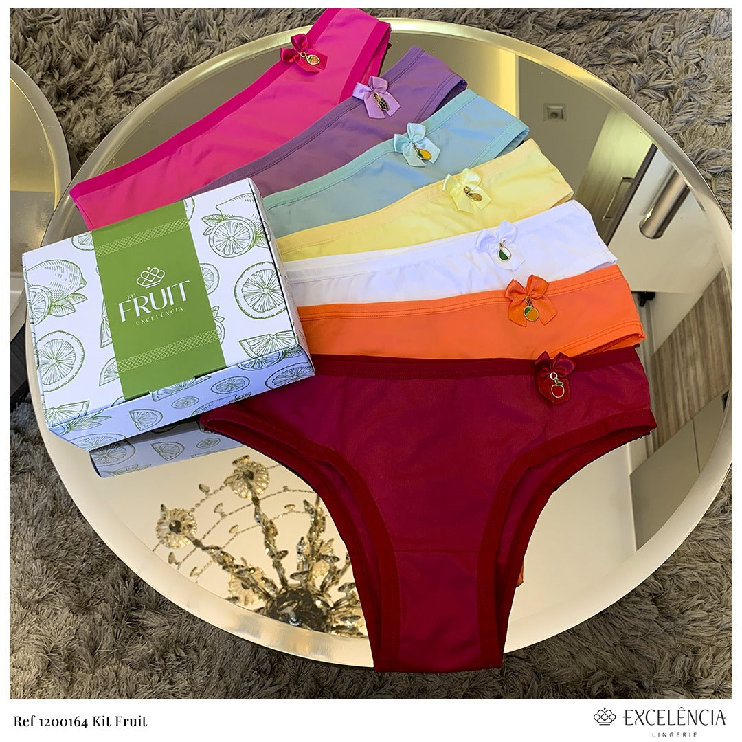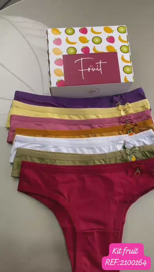 Composto por sete calcinhas ornamentadas com pingentes de frutas, esse kit foi desenvolvido em microfibra, tecido macio e confortável que proporciona um toque suave no dia a dia.