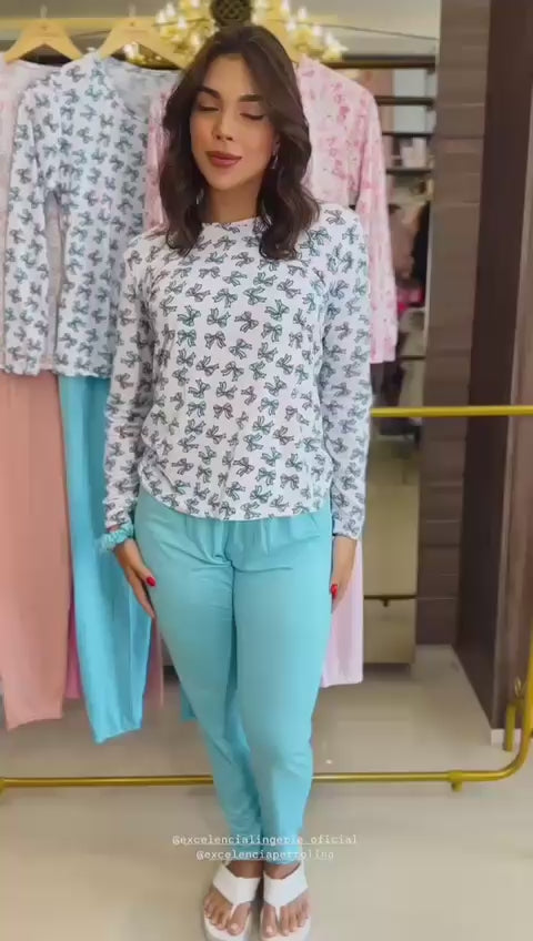 Aconchegante, confortável e cheio de estilo, esse conjunto é composto por blusa de mangas longas e calça comprida com excelente caimento, com cós em elástico propiciando melhor ajuste.