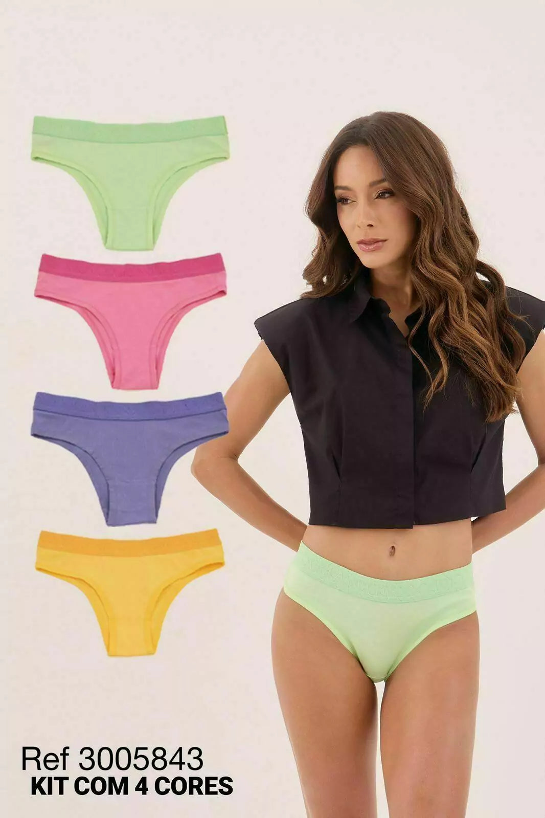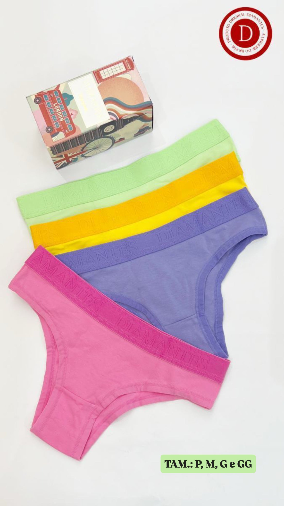 Kit com 4 calcinhas biquíni de cotton na caixa e elástico personalizado Despojada - Diamantes