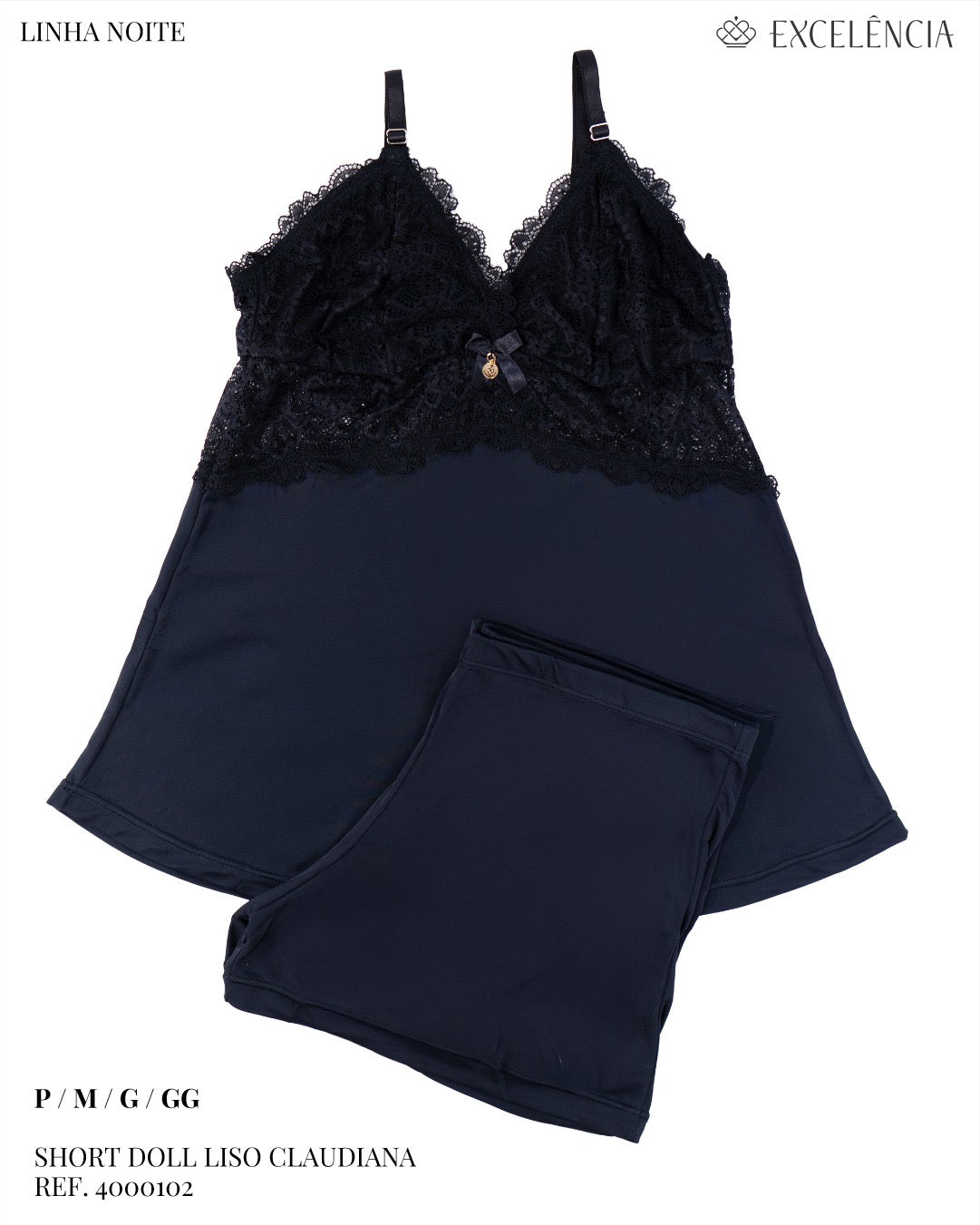 Short doll confeccionado em liganete - tecido conhecido pelo frescor e toque suave - e com detalhes em renda que proporcionam um visual elegante e sofisticado.